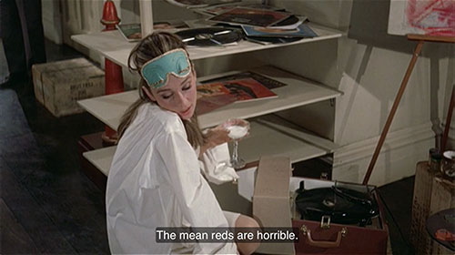 | Film 1961. Written by George Axelrod. Directed by Blake Edwards. Starring Audrey Hepburn, George Peppard, Patricia Neal and Buddy Ebsen. |  | |