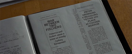 | August 19, 2007 Sunday. Date of newspaper headline: WAR BETWEEN TWO FISCHERS.