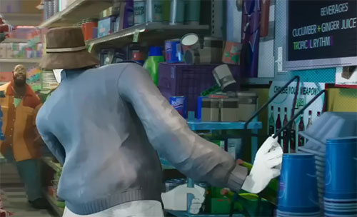 | Tropical Rhythm Beverage advertised at the convenience store where Miles encounter the Spot.