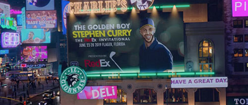 | The RedEx Invitational Golf tournament advertised in New York City, featuring real world basketball player Stephen Curry, presented by RedEx.
