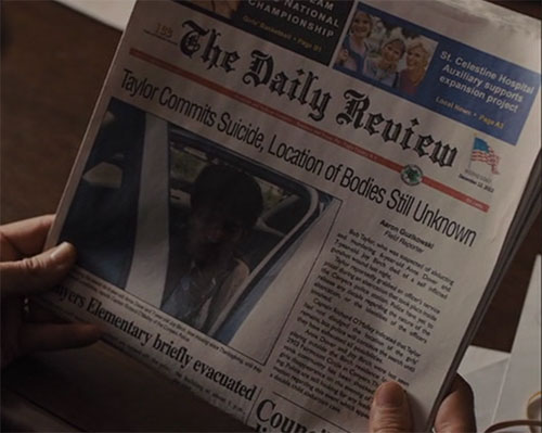 | | 2 | The Daily Review  | BBB | Media | Newspapers-misc | | The Daily Review Newspaper headline: Taylor Commits Suicide, Location of Bodies Still Unknown.