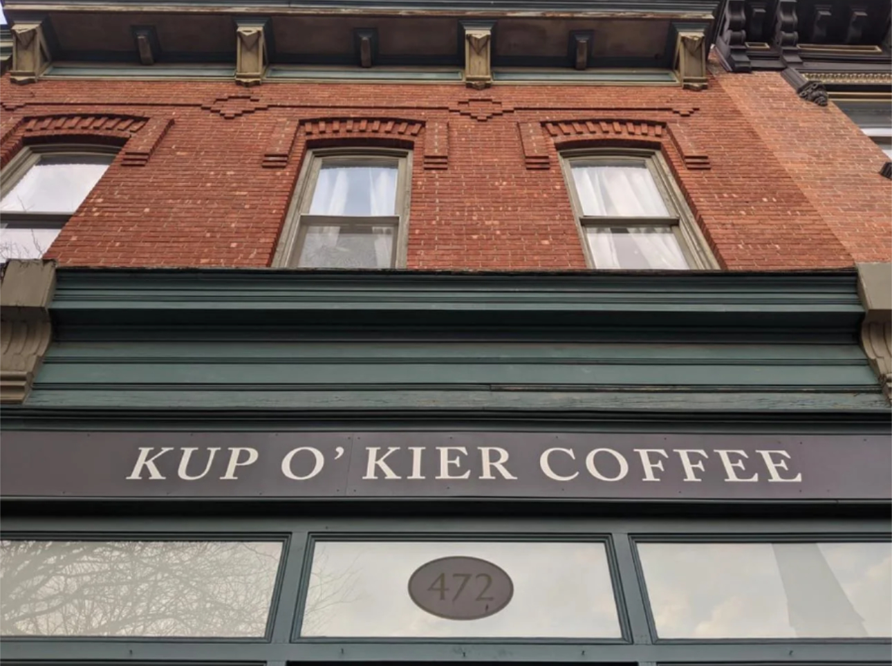 | Kup O' Kier Coffee shop storefront built on Main Street in Beacon, New York.